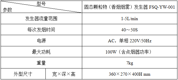 固态颗粒物(香烟烟雾)发生器FSQ-YW-001技术特性